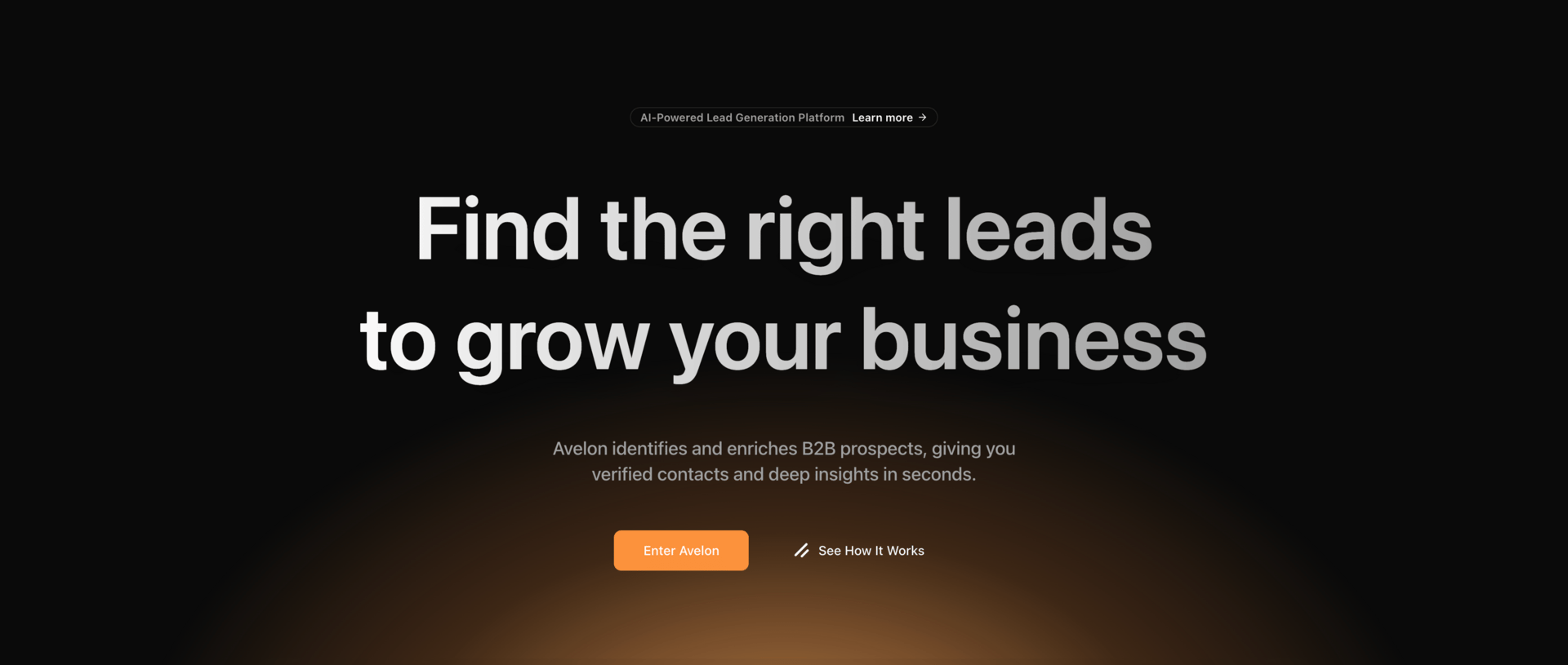 Now I want to show you Avelon. It wasn’t planned as a startup. It started as a local automation hack. We were working on multiple projects and constantly needed high-quality leads. So we built something. Something that could find thousands of leads in minutes, but with depth — not just scraped emails. We’re talking real context. So when you reach out, it’s not cold. It’s warm. Personal. Targeted.
